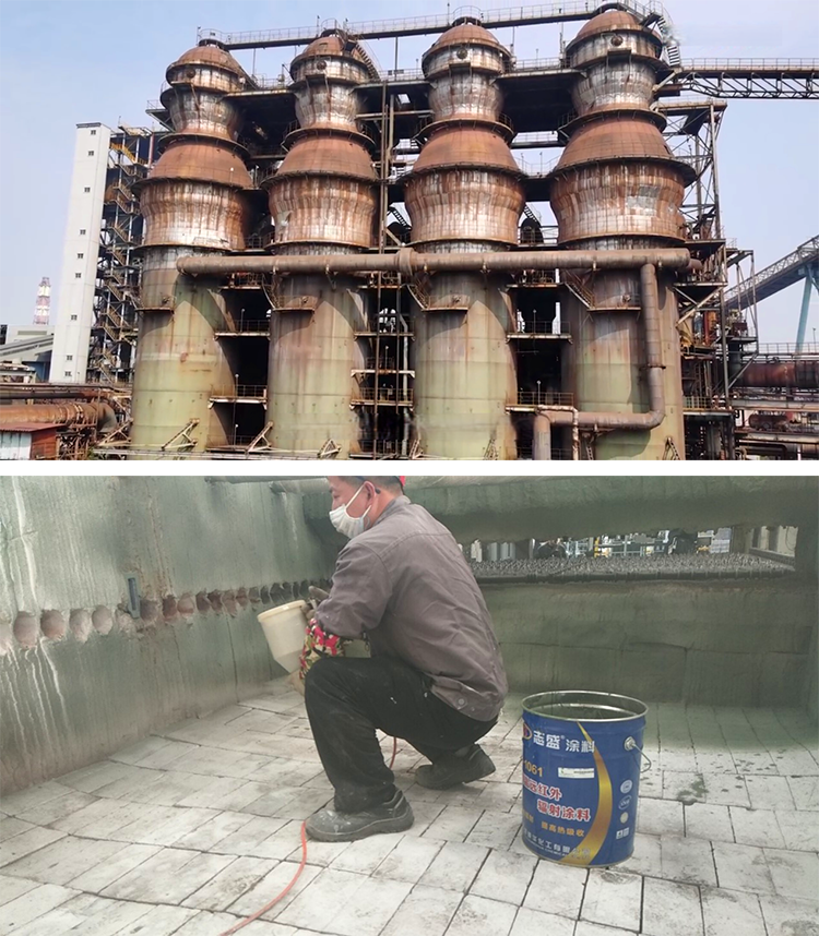 热风炉是高炉的“预热心脏”,通过燃烧高炉煤气等将冷风加热至1200℃以上送入高炉,是钢铁企业高炉炼铁系统的核心热能设备,其热效率直接影响高炉冶炼强度、焦比消耗及企业综合能耗。ZS-1061耐高温远红外辐射涂料作为一种新型高效节能材料,凭借高辐射率、优异耐高温性能及便捷施工特性,为钢厂热风炉注入节能新动能。