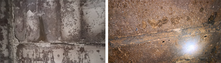 烟囱和收尘器烟道腐蚀状况:存在状况:因氨水等化学腐蚀,局部腐蚀严重磨穿。